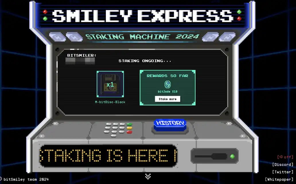 3 月 13 日,bitSmiley 宣布开启 M-bitDisc-Black 在 bitSmiley 上的质押,以赚取 bitJade 并解锁一系列福利。3 月 19 日,bitSmiley 宣布开启测试网的封闭内测。