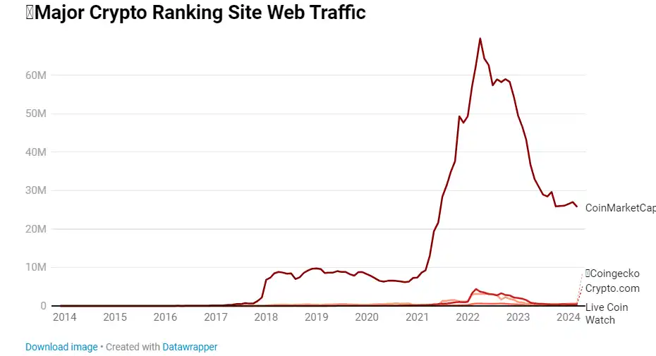 所有加密货币排名网站的网络流量都保持稳定,而不是上涨,这也与以往的市场繁荣期不同。