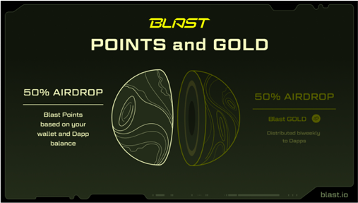 按照 Blast 当前场外的估值 50 亿美元计算,假设 Blast 最终空投的总量为 20%,即 10 亿美元,根据 Blast 的规则,其中 10% 给到 Blast Points,10% 给到 Blast Gold: