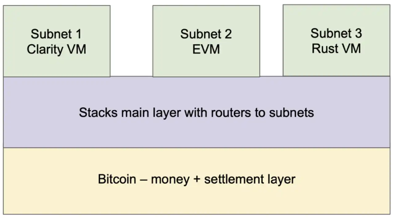Stacks 通过子网和不同的虚拟机来实现可扩展性。来源:Stacks 白皮书