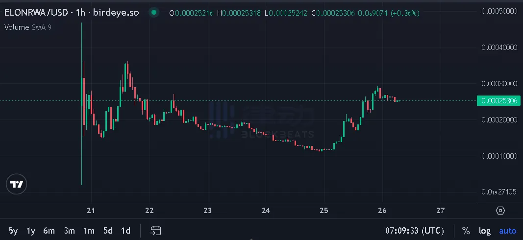 RWA 概念普涨后,顺应着 meme 炒作热潮,甚至出现了 RWA 概念 meme,ElonRWA。ElonRWA 是第一个与 RWA 叙事相关的 Elon meme 币,其源自一幅手绘的马斯克人像。在马斯克的「造富效应」加持下,ElonRWA 涨势明显,24 小时涨幅达 80.51%。