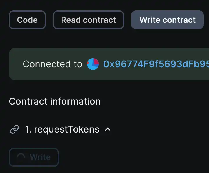 用户可以通过Plume 区块浏览器上的 USDC 水龙头获取测试网 USDC。使用钱包连接 Plume 测试网,然后点击「requestTokens」下方的「Write」即可获得 100,000 个测试网 USDC
