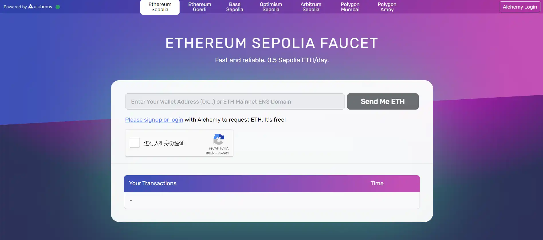 首先,从Alchemy 水龙头或 Infura 水龙头 将一些 SepoliaETH 存入 Sepolia 钱包,作为交互 gas 费。