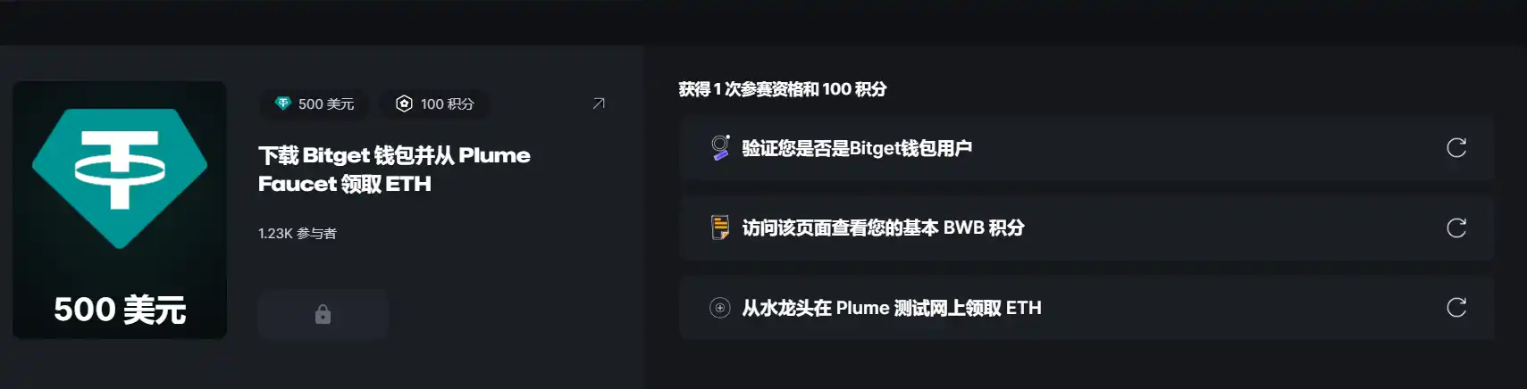 目前,Plume network 暂未发币,但可以参与 Empower BWB 积分计划。Plume 目前作为 L2 部署在以太坊 Sepolia 测试网上,领取测试代币,参与 Plume 的测试网,完成桥接等任务有机会获得 Plume 积分与抽奖资格。