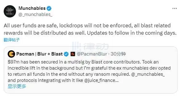 2. Blast 创始人:前 Munchables 开发者已选择归还资金,希望 Blast 开发者能从中吸取教训;