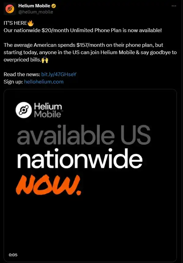 氦气在现实世界中的一个有趣应用案例是氦气移动(Helium Mobile),这是美国的一家网络供应商,只要有氦气节点,它就会使用。只要范围内有氦气节点,移动网络就会利用这些氦气节点。
