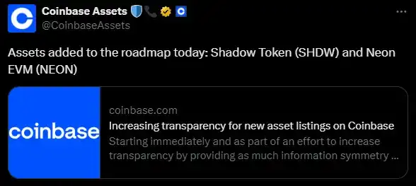 Shadow Token 已经有了自己的原生代币 - $SHDW,目前的 FDV 约为 3.785 亿美元。该代币即将迎来的催化剂是最近刚刚宣布的 Coinbase 上市。目前,用户只能在索拉纳(Solana)链上购买这种代币,但是,一旦这种代币在集中式交易所上市,就会有更多的零售资金流入这种代币。