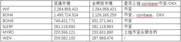 市值排名前 100 的 meme 代币分别是 DOGE、SHIB、PEPE、WIF、FLOKI、BONK。除以太坊上 meme 代币,仅有 solana meme 代币市值进入前 100。在区块链的 meme 文化中,「DOGE」狗文化可被视为原文化单位,SHIB、FLOKI 为以太坊链上的狗文化再创造,而 BONK 和 WIF 则是狗文化在 Solana 上的再创造。WIF 社区中包含更广泛的社区基础,因此在后期超越了 BONK, 成为了 Solana 上的 meme 龙头。