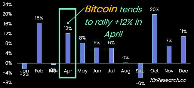 Matrixport 分析师 Markus Thielen 也已在 3 月 29 日发文传达了对 4 月行情的看好,他认为,比特币已连续七个月大幅上涨,4 月份可能会继续沿着 70,000 美元价格上涨 12%,至 84,000 美元。