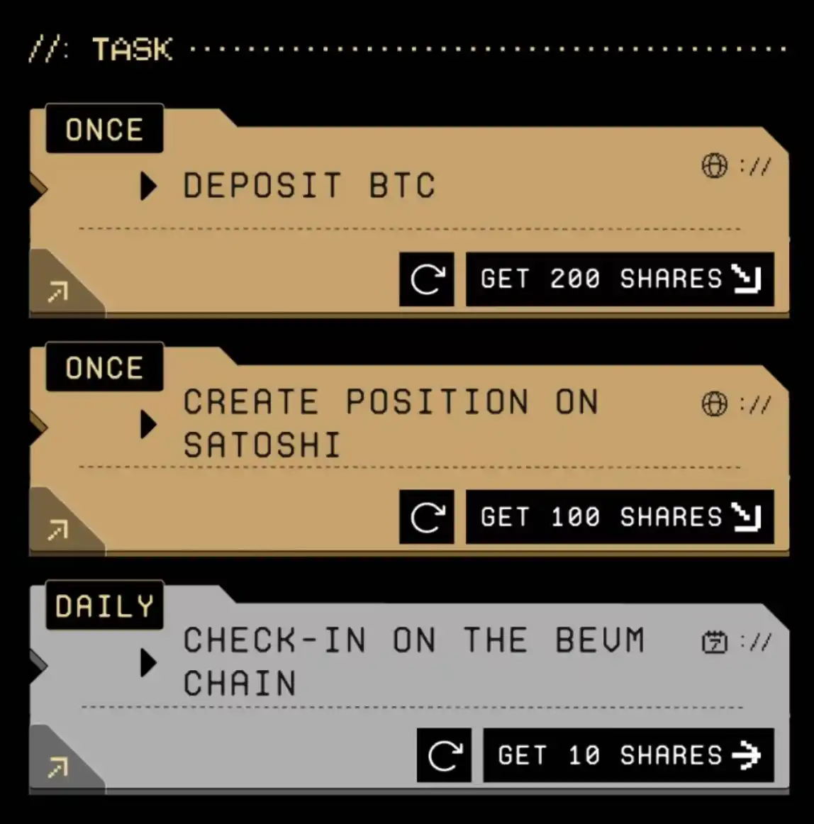 注意,这里使用 BTC 铸造 SAT,不仅可以获得 BEVM 代币空投,还可以获得 Satoshi Protocol 代币的空投(也是 Satoshi 代币总量的 0.5%),近期,Satoshi Protocol 宣布获得 Web3port、Waterdrip Capital 以及 BEVM Foundation、Cogitent Ventures 等机构的投资,作为 BEVM 目前唯一一个推荐参加币安钱包活动的项目,也非常值得撸。因此,如果顺便多跨一点资金,还可以去完成satoshiprotocol.org的另外两个空投激励,存入的资金越大,获得的空投越多。