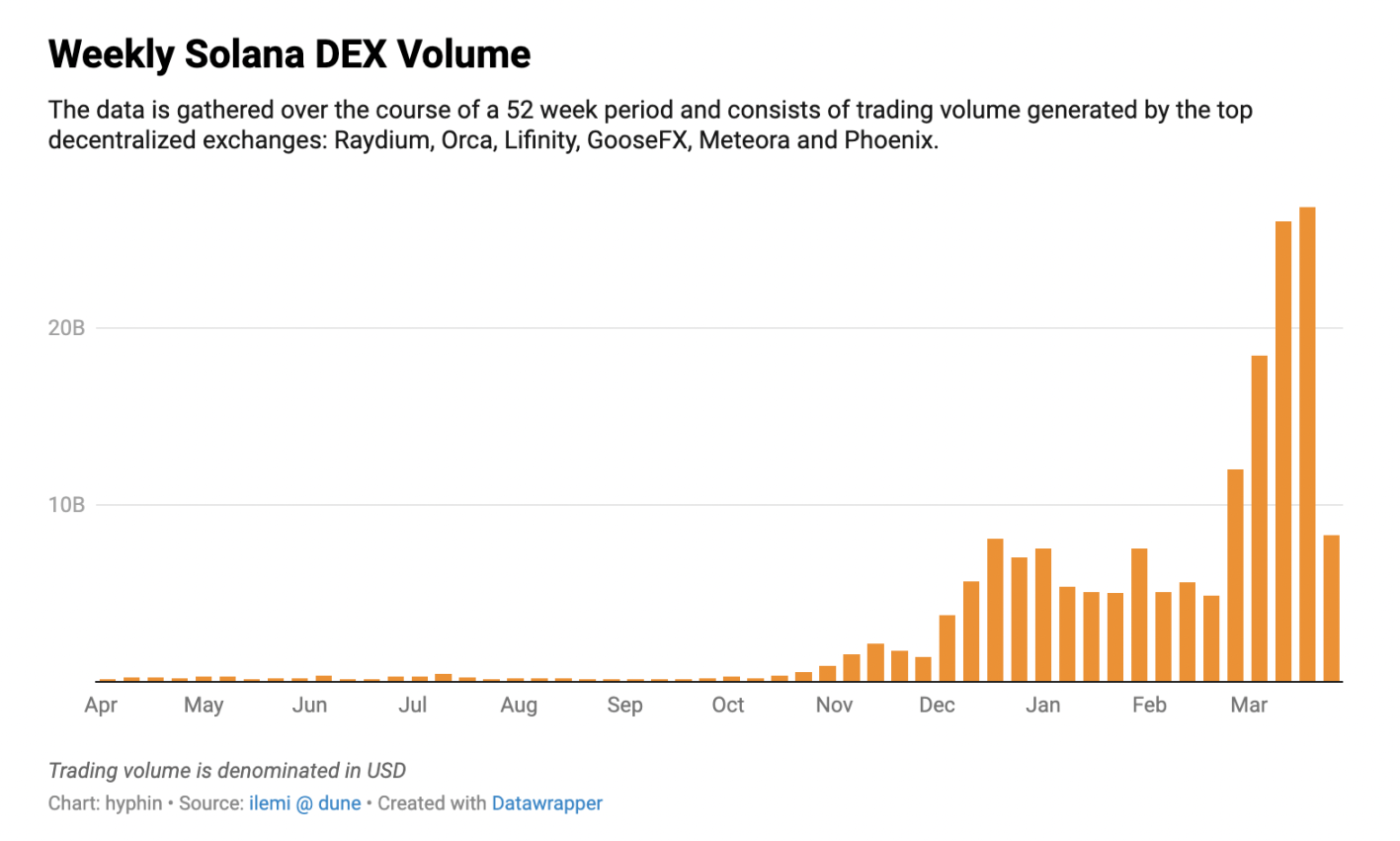 长期以来,Memecoin 的中心枢纽一直是以太坊,直到最近才出现了一些竞争对手。与这些代币相关的活动发生了变化,Solana 成为进入市场的项目和投机者的活跃阵地。