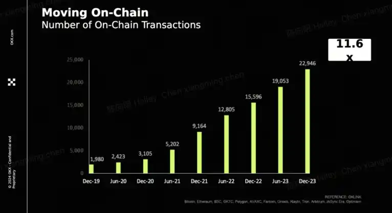 回归今天的主题,我们的行业代表了什么?在比特币和 Web3 诞生之时,行业真正的精神一直围绕着透明度、责任和权利展开。我们如何通过技术、产品和解决方案的启用来提供更多的透明度、责任和权利?这就是我们在这里的目的。在过去两年多的发展过程中,除了作为创新者、企业家和建设者带来的最佳应用之外,我们还正在从受监管行业中进行借鉴和学习,通过采用这些行业的最佳实践来增强透明度、责任和权利。接下来,我很荣幸和大家分享 OKX 接下来在这些方面的发展方向。