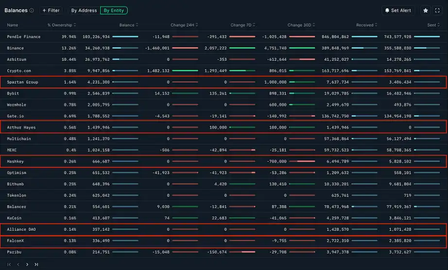 目前在链上能查询到投资者包括 Spartan、Arthur Hayes、Hashkey、Alliance DAO、FalconX 等。