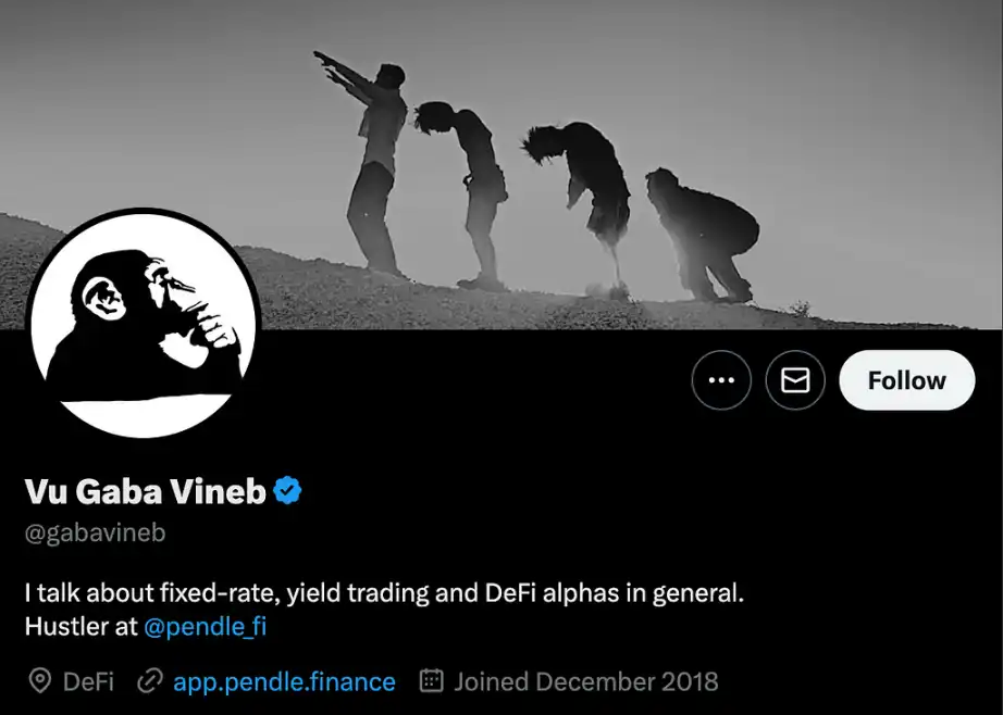 Vu Nguyen(X: @gabavineb):Co-Founder,曾经在 Digix DAO 担任 CTO,专门从事实物资产的代币化的 RWA 项目,其与 TN Lee 共同创建了 Pendle。