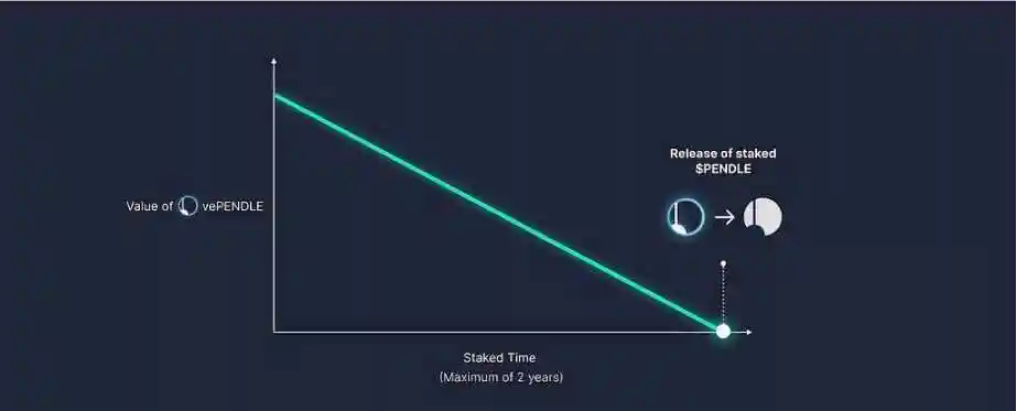 · 锁定 PENDLE 时间越长,相应 VePendle 值就越大。