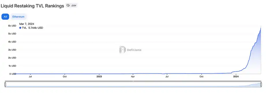以上是 LRT 种类的代币,LRT 依托于 Restaking 以及 LSD 的代币,其市场空间 Restaking 目前有 110 亿美元,而 LSD 目前有 551 亿美元,这些都伴随着 ETH 价格、LSD 赛道的发展、质押逐渐走向主流金融机构,市场空间变得更广泛。