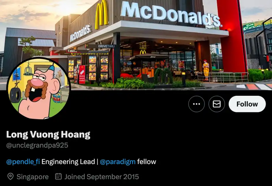 Long Vuong Hoang(X: @unclegrandpa925):工程主管,获得新加坡国立大学计算机学士学位,在 2020 年 1 月加入新加坡国立大学担任助教,在 2021 年 5 月加入 Jump Trading 担任软件工程实习生,在 2021 年 1 月加入 Pendle 担任智能合约工程师,后在 2022 年 12 月升职为工程主管。