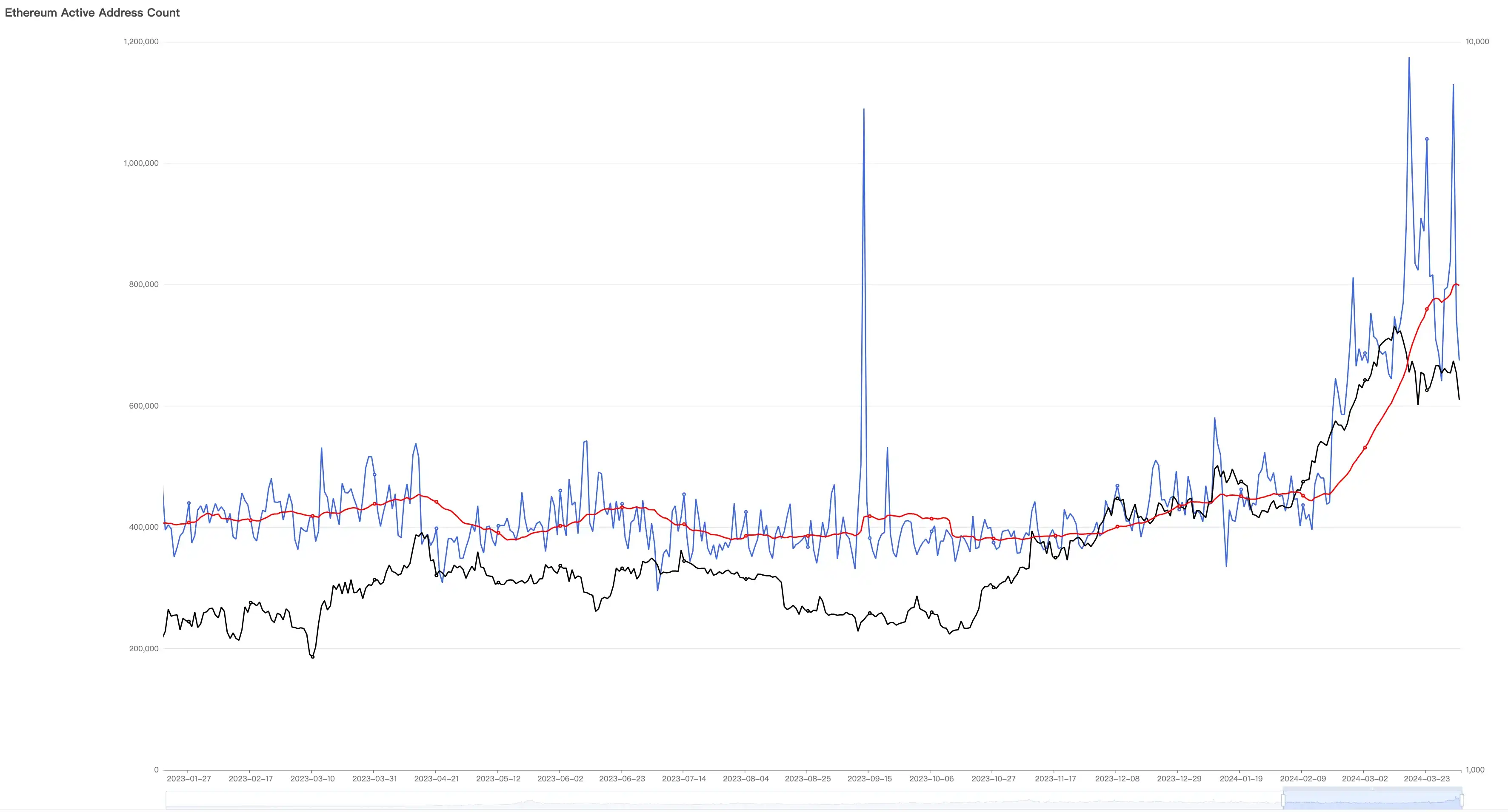 对于 Etherum 的数据表现,我们可以理解为牛市刚刚启动,主要还是存量用户的复苏与活跃,而规模性的新增用户尚未蜂拥而至。