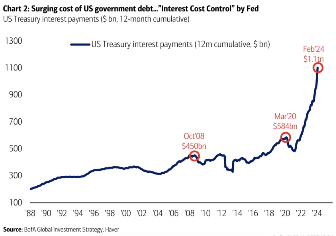 这是美国国债增发和降息延后的代价,也是市场押注美国政府会尽快降息的深层原因之一。