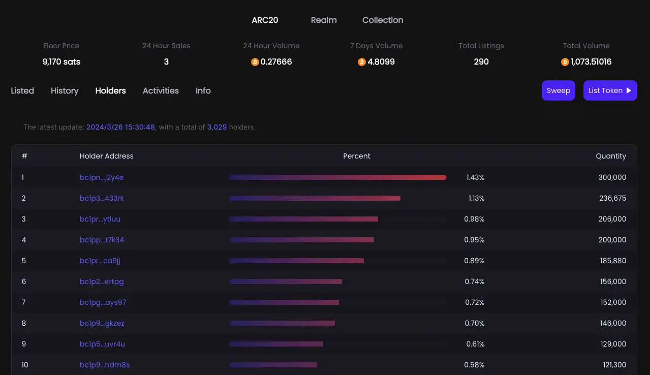 直到今年之前,Atomicals 协议作者 Arthur 一直致力于「拆分」功能的开发。我们也观察到,ATOM 的价格往往随着拆分功能的进展而上涨。可以看出,早期持有仓位的社区成员对拆分功能的期待很高。在理想的规划下,一旦 ATOM 实现拆分,交易量和地址数量都将大幅增加,从而尽早登陆交易平台。