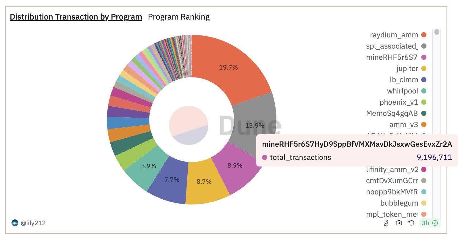 在 4 月 2 日上线后,Ore 一开始出现了许多 bug,用户挖矿时出现报错。尽管如此,Ore 仍然吸引了不少关注。随着 bug 的不断修复,更多的用户纷纷入场,到了 4 月 5 日上午,Ore 已经成为 Solana 上使用率最高的前三名程序之一,甚至超过了 Jupiter Exchange。