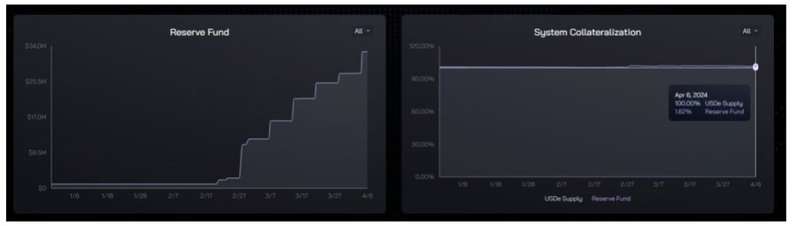 第一个问题是USDe是否有足额抵押物,答案很显然是肯定的。正如项目文档所述,USDe 的抵押物是加密资产和相应的空头期货头寸的合成资产作为抵押物。