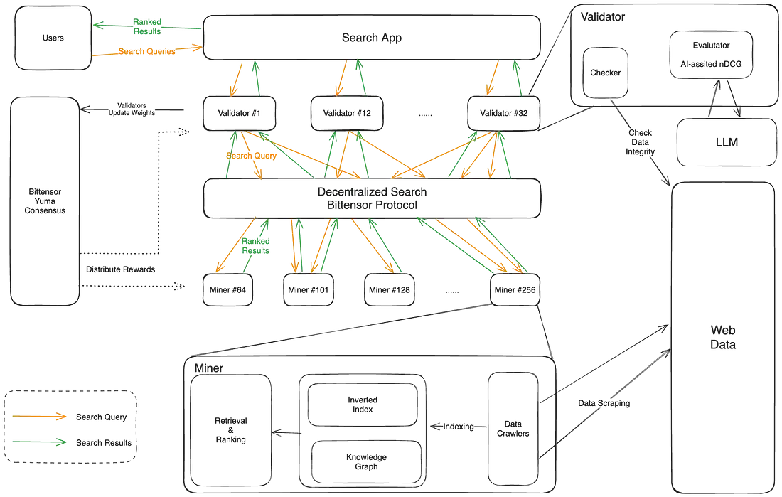 定位:Open Kaito 旨在建立一个去中心化的索引层,以支持智能搜索和分析。搜索引擎不仅仅是一个数据库或排名算法,而是一个复杂的系统。此外,一个有效的搜索引擎还需要低延迟,这对构建分散版本提出了额外的挑战。幸运的是,通过 Bittensor 的激励系统,这些挑战有望得到解决。