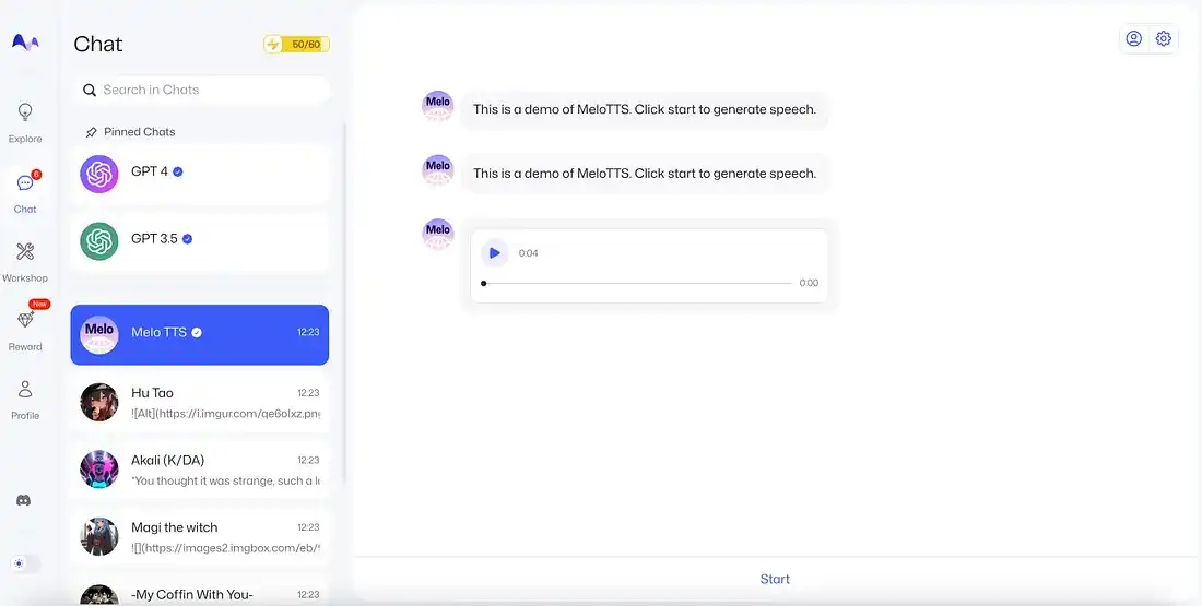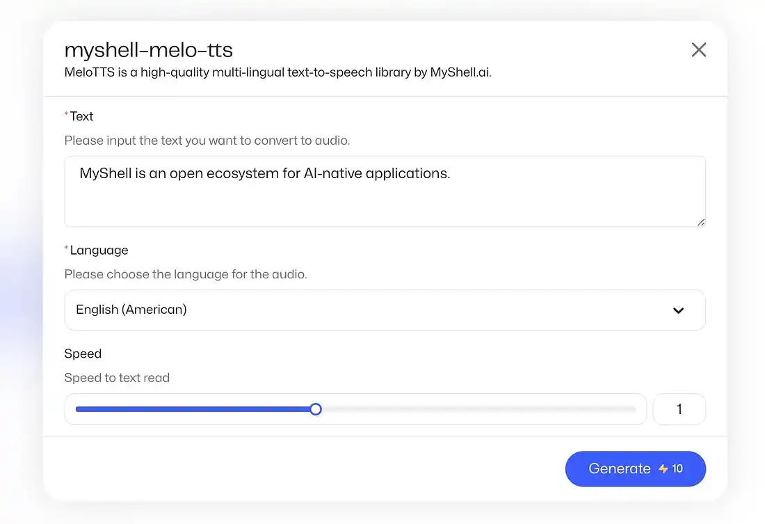 目前,Myshell 还在其平台上推出了一个演示,供用户尝试 Myshell TTS 中的模型。