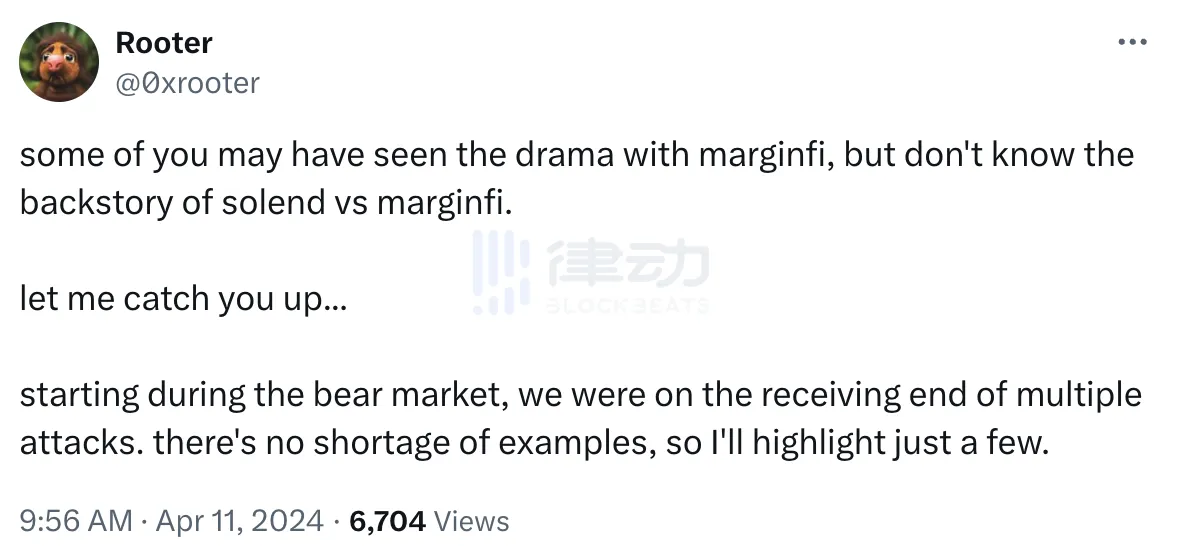 Solend 创始人 Rooer 顺势出场发表长文,细数 Solend 和 Marginfi 的纠葛往事。