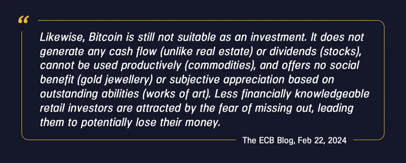 欧洲央行观点 2:比特币仍然不是合适的投资。