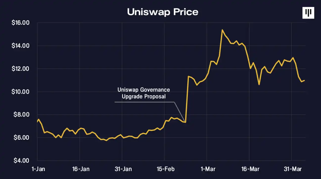 今年 2 月,Uniswap 基金会提议对协议的治理系统进行重大改革,这将使代币持有者获得资本回报,将代币与协议的价值创造直接联系起来。如果获得通过,部分交易费用将分配给代币持有者,但仅限于那些通过参与协议治理积极为协议做出贡献的代币持有者。