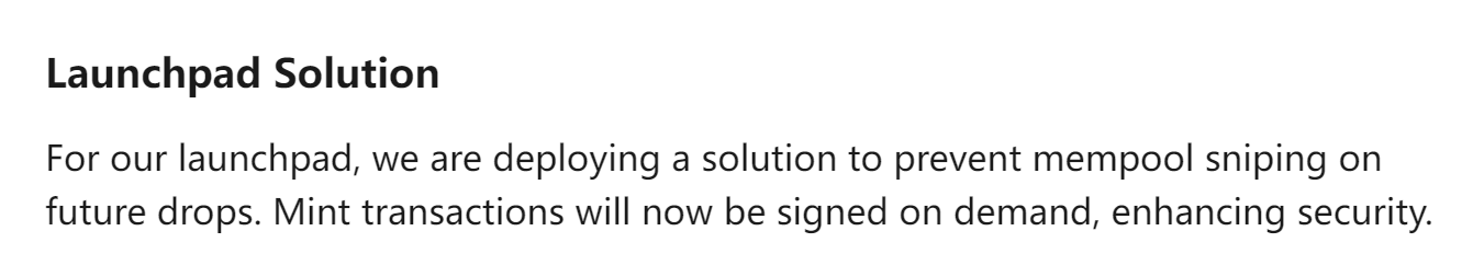 其实这已经不是一个老问题了。去年 11 月底,在 Magic Eden Launchpad 上发行的「OrdiBot」系列成为第一个著名受害者,@mulan_art 的「Unigraphs」系列也马上延迟了在 Magic Eden Launchpad 上的发行,原因正是因为当时「RBF」可以使任何非白单的用户绕过白名单机制来「抢跑」。之后 Magic Eden 针对其 Launchpad 的这个问题做出了修复,现在,Magic Eden Launchpad 白名单铸造不需要再担心被「RBF」了。(相关阅读:白单用户 Mint 遭狙击手「半路抢劫」,Ordibots 将重发空投以弥补损失)