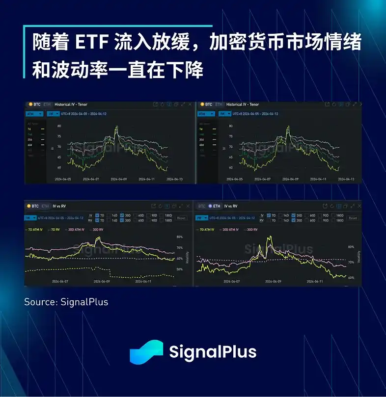 在加密货币方面,BTC 价格一直在 7 万左右徘徊,由于主要货币未能大幅向上突破,部分多头进行了对冲和获利了结。随著减半的到来,ETF 资金流入已经放缓,市场情绪也较为低迷,预计接下来会有更多盘整走势。