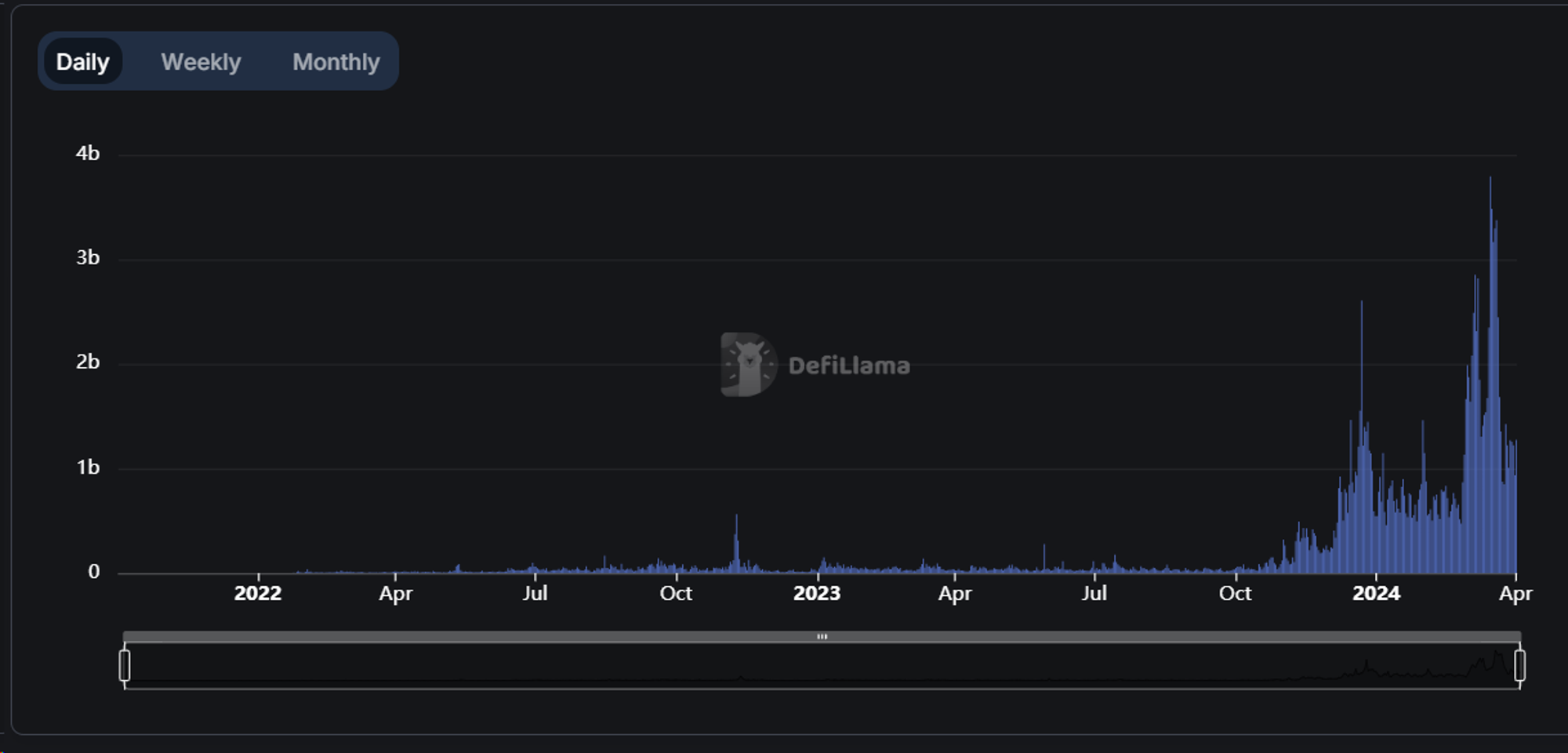 (Solana DEX 交易量随时间变化图表,来源:DeFiLlama)