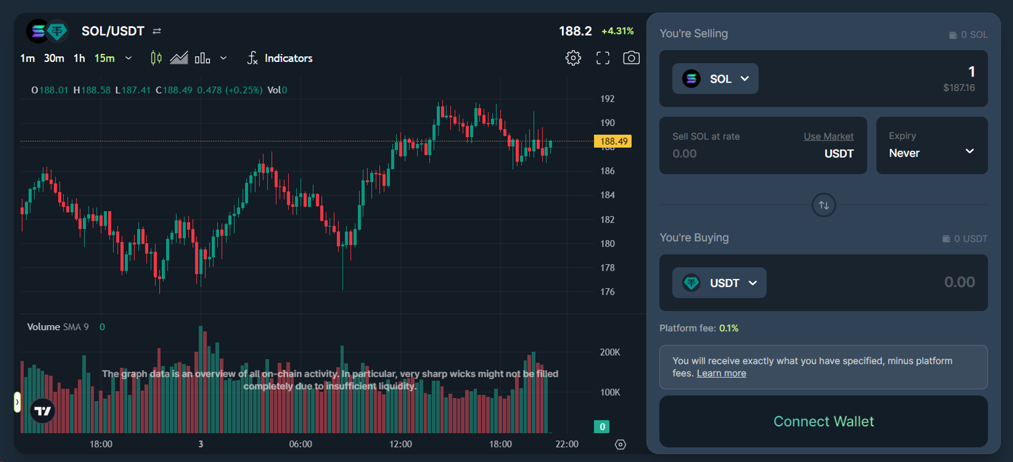目前 Jupiter 支持任意代币对之间的交易,实际上实现了比 CEX 更便捷的交易体验。同时 Jupiter 与 Birdeye 以及 TradingView 合作,Birdeye 提供链上价格数据,TradingView 则集成在前端给用户进行更便捷的图表数据展示。Jupiter 目前收取 0.1% 的平台费用。