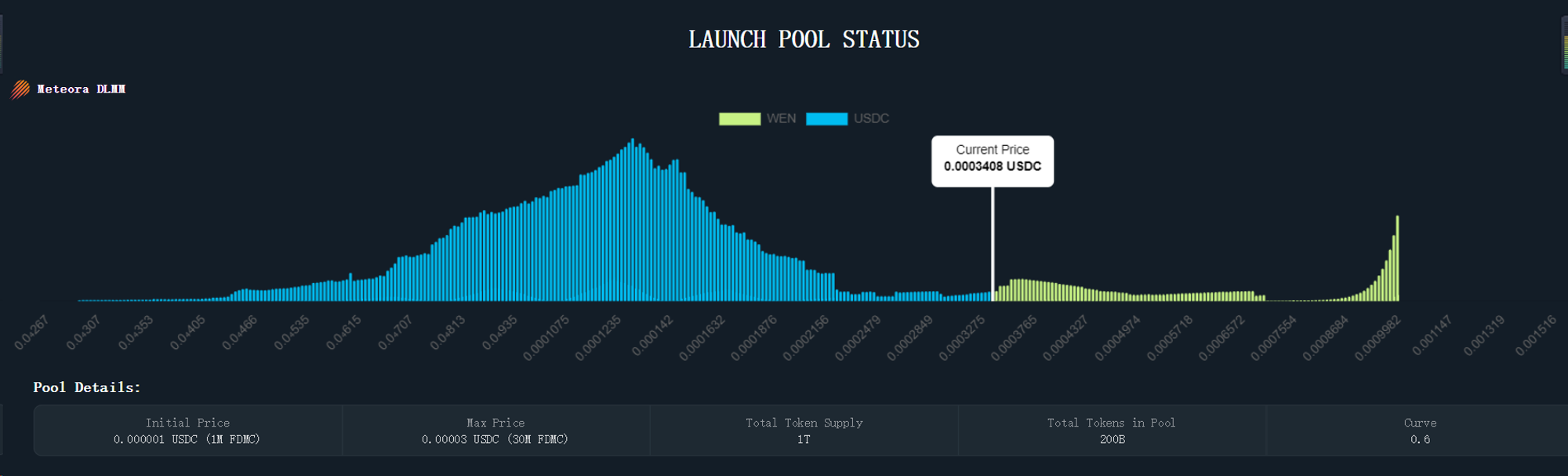 对代币购买者来说,JUP Launchpad 采用 DLMM(动态流动性做市商)的模型进行代币销售。DLMM 模型将一个价格范围细分成多个离散型的价格区间,团队主要提供 Token 的流动性,用户提供 USDC 流动性,在这一过程中完成代币售卖。此外 Jupiter 为了减少复杂机制对用户的影响,依然提供了 DCA 和限价单功能,使得用户可以在代币发售期间依托合适的策略完成代币购买。