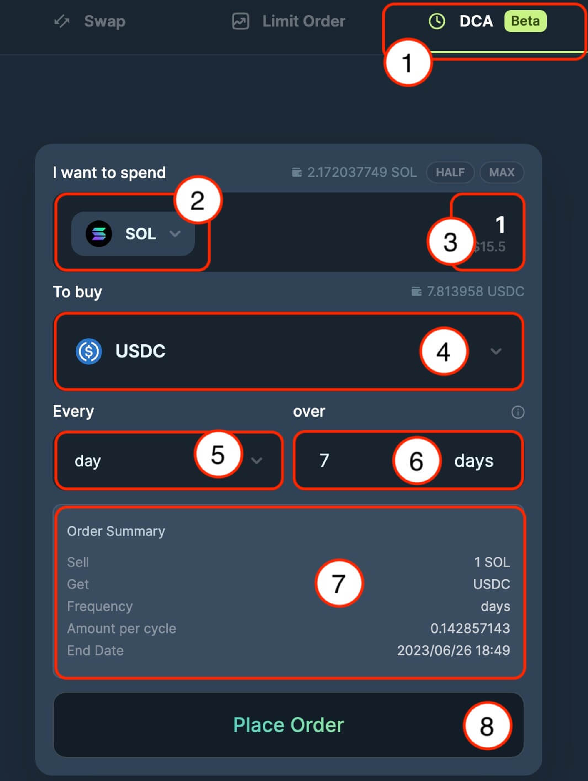 Jupiter DCA(Dollar Cost Averaging)是一种定投方案,使用户能够在一定时间段内定期自动购买或销售任何 Solana 生态代币。Jupiter DCA 收取 0.1% 的平台费用,将会在每次交易执行时收取。DCA 方式无论对于买入和卖出都是一种非常重要的基本策略,采用定投方式积累筹码可以避免价格的急剧波动,在一个时期内获得较为稳定和平均的成本价。DCA 同样适合于牛市获利时的卖出策略,此外对于大额交易或流动性较差的代币,可以选择在一个时间段内持续吸筹来降低价格影响。