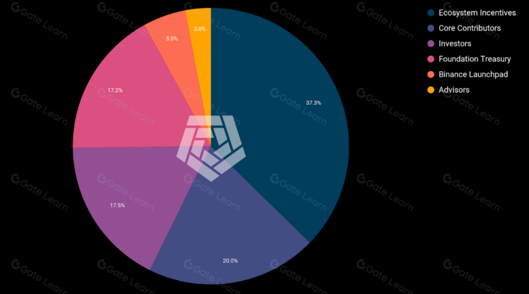 ARKM 的总量共有 10 亿个,分配如下:37.3%:用来维持生态系统;20%:保留给核心贡献者;17.5%:保留给投资者;17.2%:用作基金会资金;5%:用作币安 Launchpad;3%:保留给顾问。