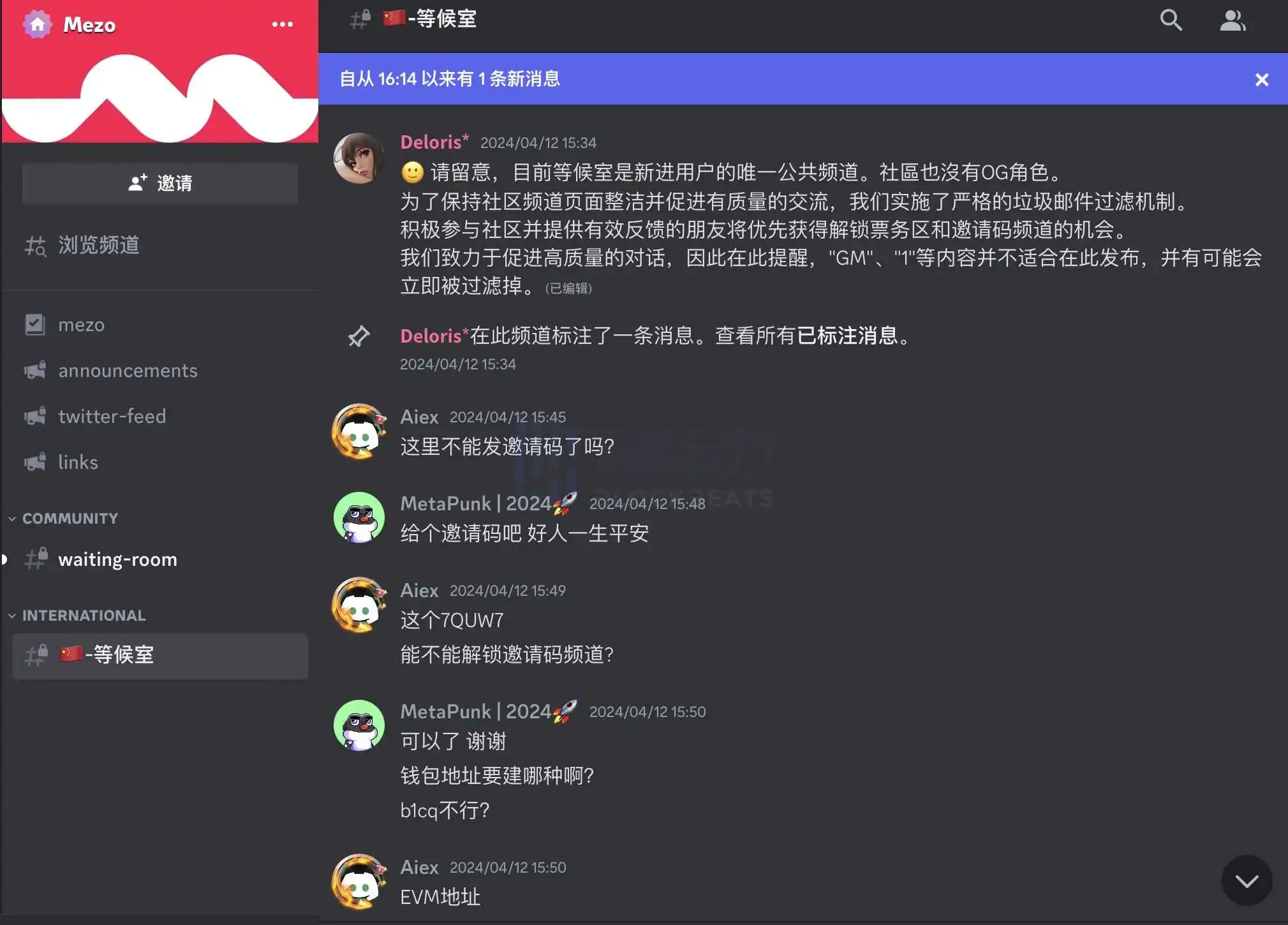 首先进入项目网站,输入邀请码,如果没有邀请码,可加入项目 Discord 获取,进入频道后在等候室联系管理员进入邀请码频道。