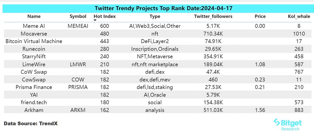BTC 核心开发人员 Casey 等相关项目方更新:关注项目方的 Twitter、TG/DC 的消息发布,BTC 减半期间,BTC 生态项目释放利好的可能性非常高。需要及时关注项目方消息面的发布,新资产协议 Runes 即将上线主网,可能会出现生态的热度资产炒作;