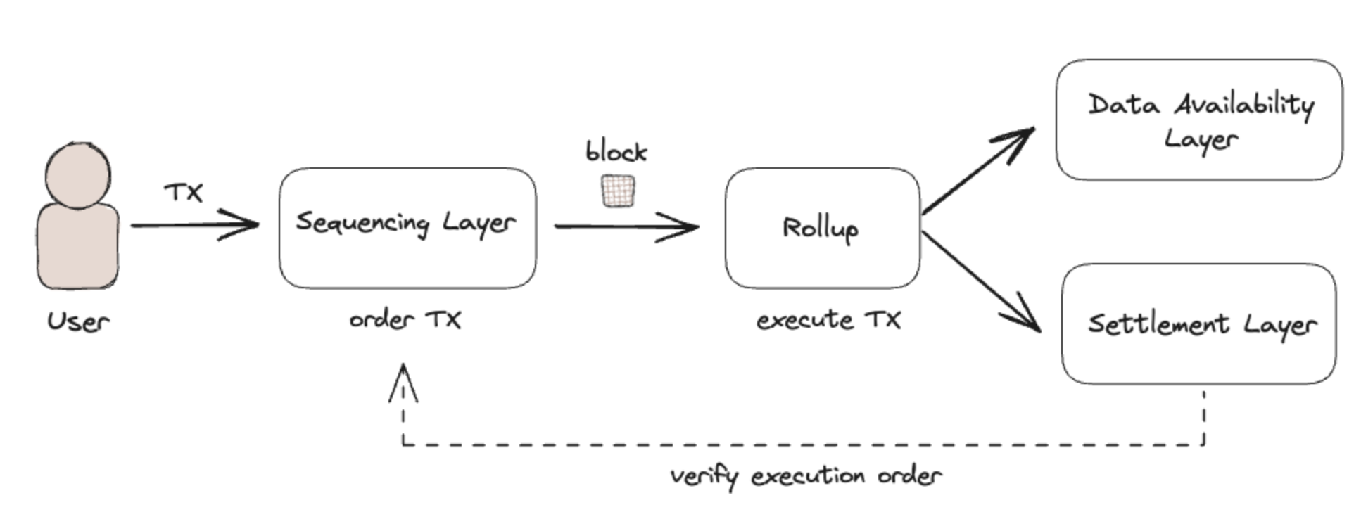 执行层内部还可以进一步分工为 Sequencer 和 Prover,Sequencer 负责计算状态转换,而 Prover 负责生成证明(尤其是ZK-Rollup,因为生成证明的计算类型和开销对硬件有一定要求)。