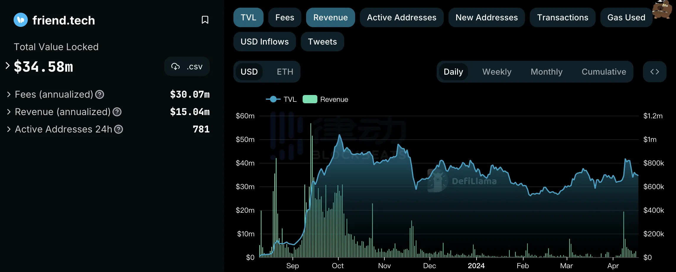 到了上个月,Friend.tech 最低日收入只有几百美元,不到巅峰时期的几十分之一。