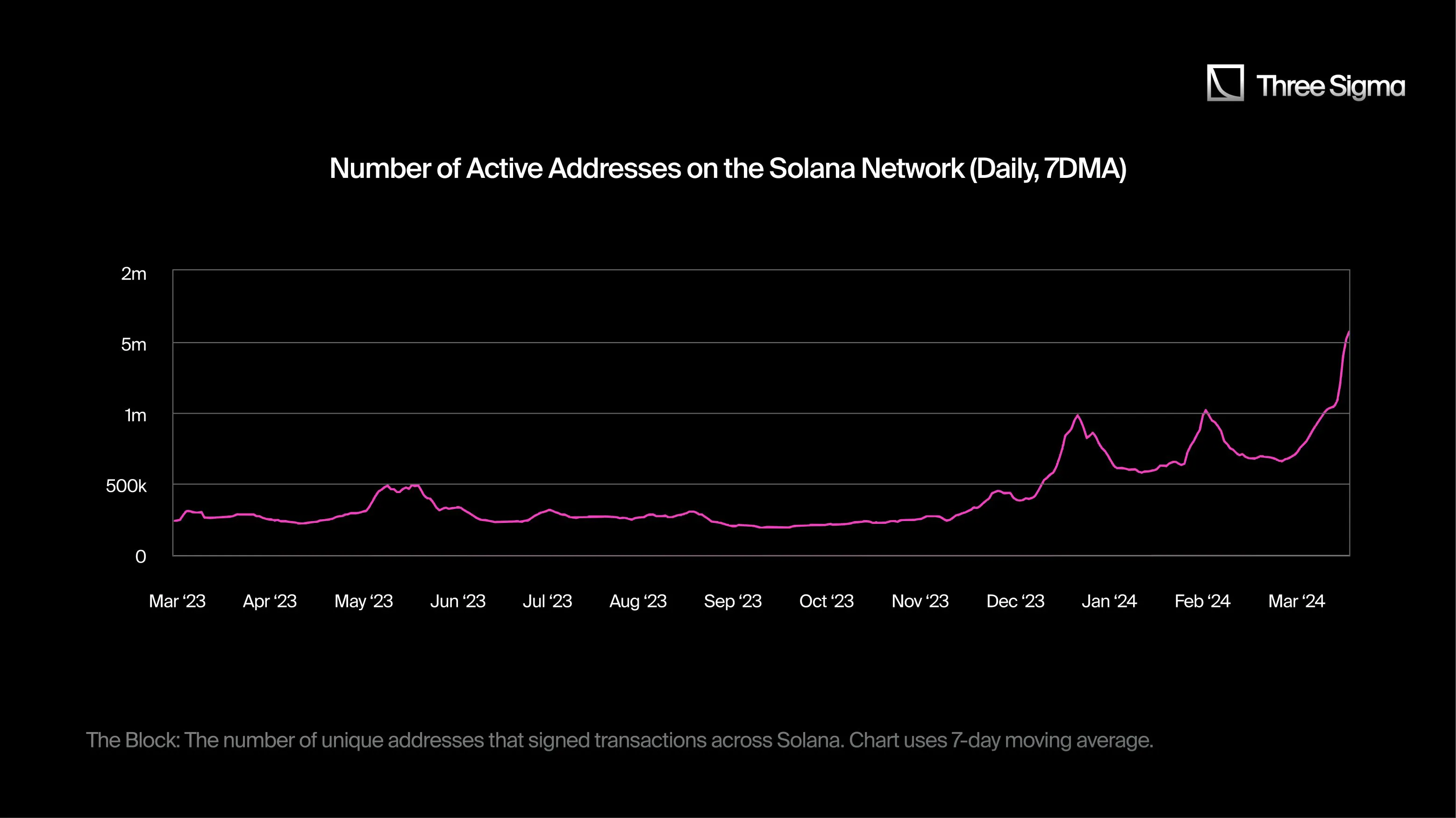 Jito空投也促成了Solana指标的激增,凸显了追求空投的盈利性。该空投于2023年11月25日宣布,空投认领窗口于2023年12月7日开放。持有至少100个积分的用户将获得8000万个JTO代币的分发。随着Jito的TGE,Solana上的活跃地址数量在随后两周内增加了一倍以上,从12月7日的大约413,000个增加到12月21日的约981,000个。