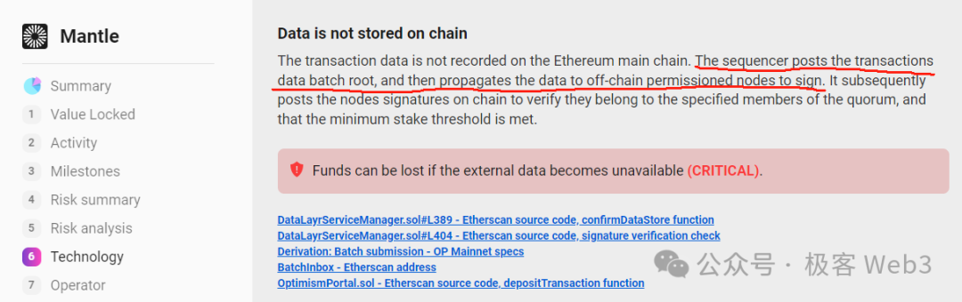 - 排序器从 Oracle 节点处收集多签结果,当签名数量满足阈值要求后,就把这些签名信息发到比特币链上,附带 DA 数据(data batch)的 datahash,交由外界去读取并确认。