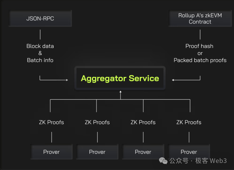要加速 ZK 证明的生成,将任务并行化切分处理,是一个最基本的操作。所谓的并行化,其实就是把 ZK 证明的生成任务切分为不同的部分,由不同的 Prover 来分别完成,最后再由 Aggregator 聚合者把多段 Proof 聚合为一个整体。