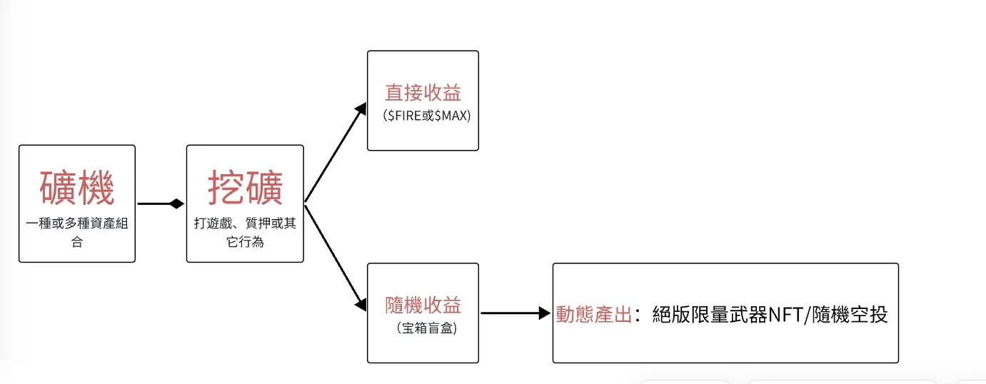 玩家持有矿机参与游戏挖矿,MATR1X FIRE 的直接收益为 FIRE 代币,同时可获得宝箱。