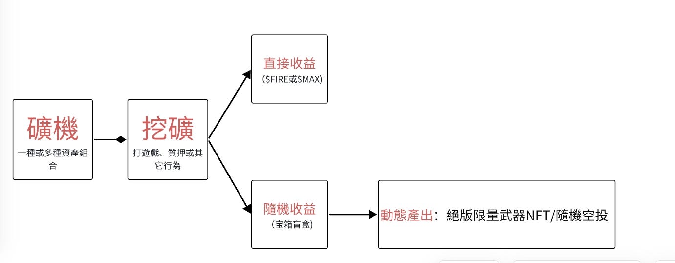 玩家持有矿机参与游戏挖矿,MATR1X FIRE 产出的直接收益是$FIRE代币,同时可获得宝箱。
