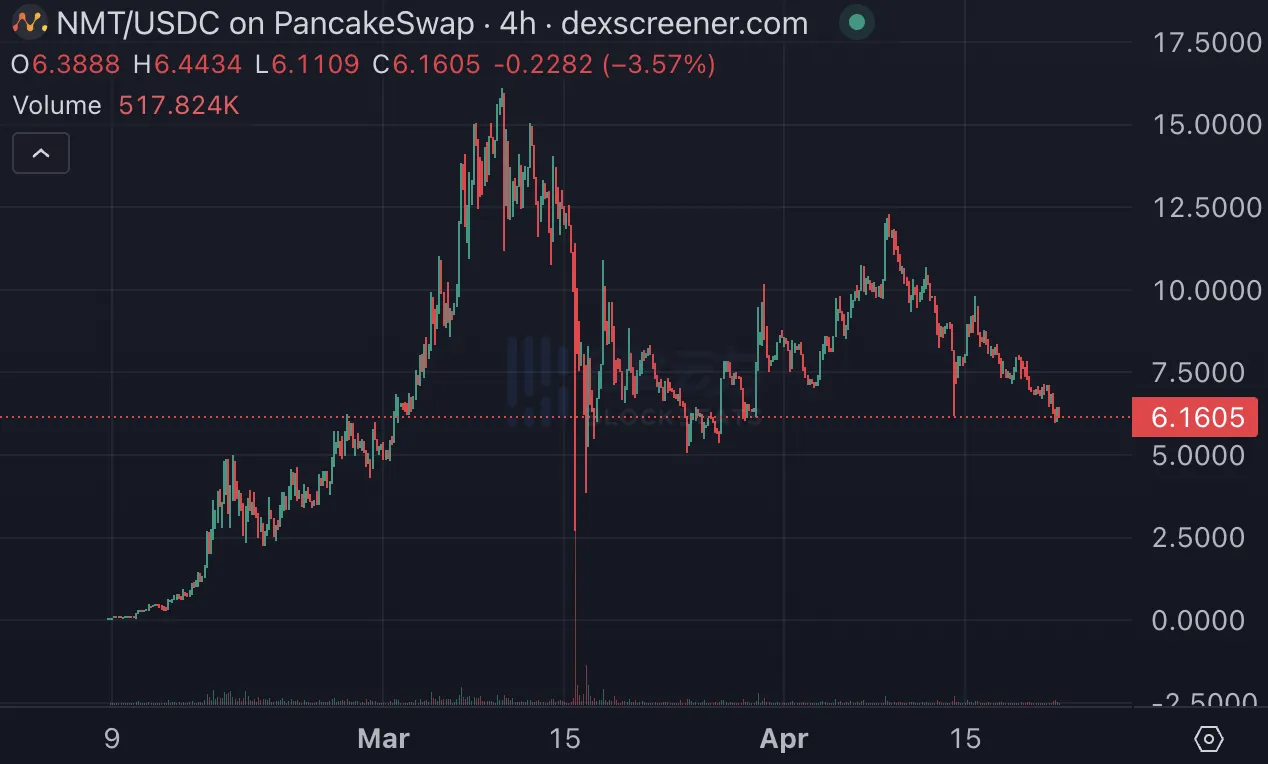此次代币经济学的改动早有预热,上个月 NetMind.AI 曾经历了一次 FUD,在代币上线后月涨幅超 70 倍时,社区监测到疑似团队大量抛售代币,代币因而短时跌超 60%。尽管 NetMind.AI 创始人发布长文作出解释,称抛售行为来自于早期项目矿工,但 NMT 之后并没有回到之前的高点。