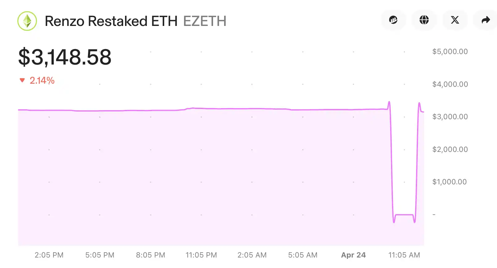 除此之外,Renzo 的戏剧性事件还有今天早些时候,由于流动性不足以及大单抛盘,Renzo LRT 代币 ezETH 短线大幅脱锚跌至 688 美元。截止发稿,EZETH/WETH 流动性池仅为 320 万美元,EZETH 在 Uniswap 的以太坊主网上报价 3148.58 美元。