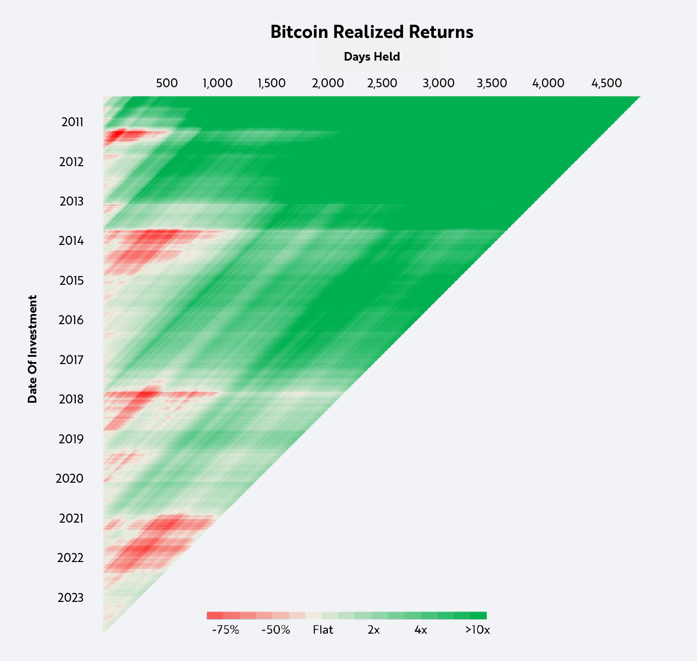 重要的是,自比特币诞生以来,无论何时购买,持有达 5 年的投资者都获得了利润,如下所示。